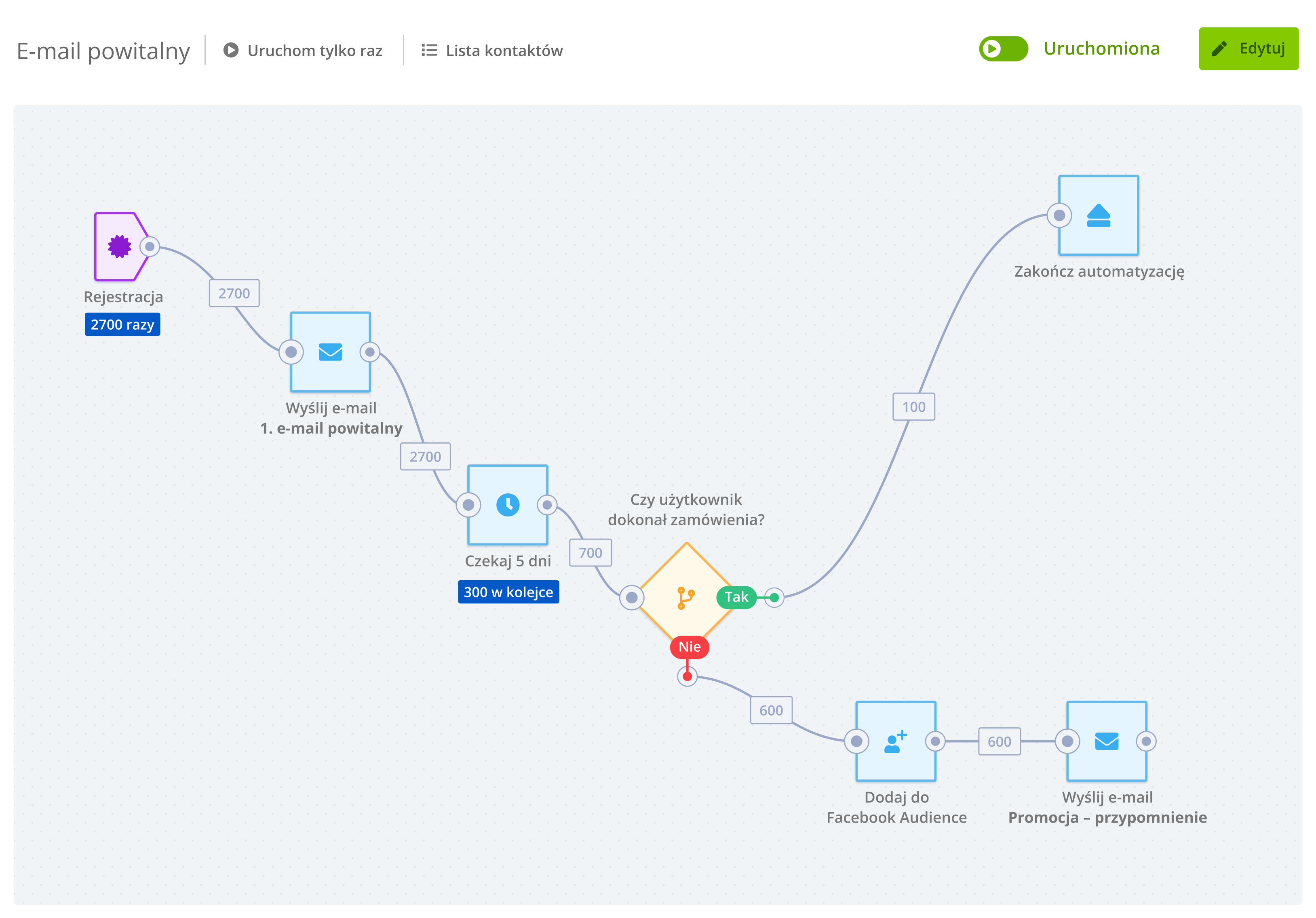 Projektuj scenariusze z e‑mailami i wiadomościami SMS, które reagują na zachowanie klientów w czasie rzeczywistym. Dzięki prostemu kreatorowi i gotowym szablonom to bułka z masłem.
